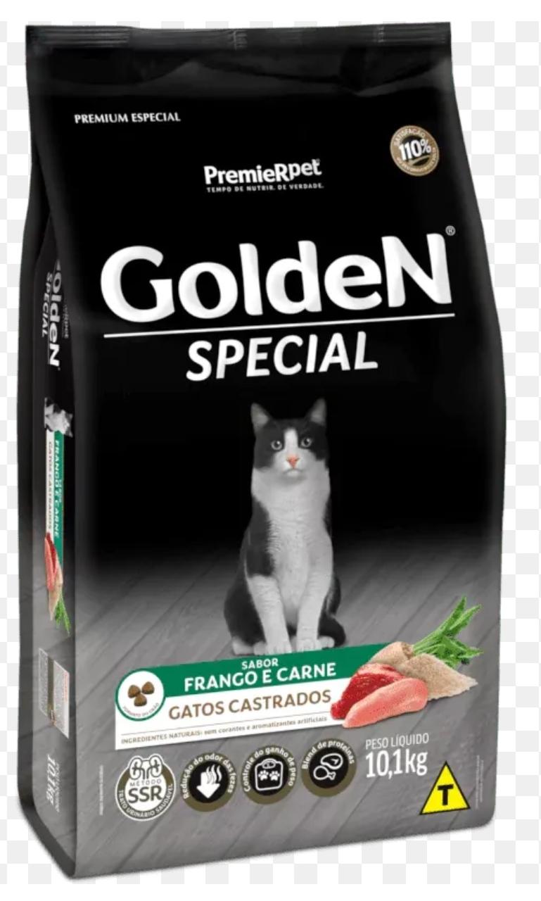 GoldeN Special Gatos Castrados Sabor Frango e Carne é um alimento completo, balanceado e rico em nutrientes, indicado para gatos castrados a partir dos 6 meses de idade e contraindicado para filhotes de idade inferior a 6 meses, fêmeas gestantes e lactantes, devido ao seu reduzido teor calórico.